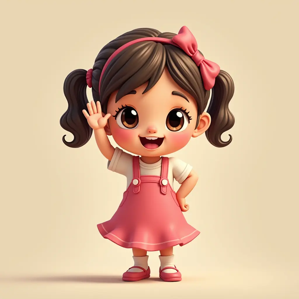 طفلة ترفع يدها للترحيب.. شخصية كارتونية