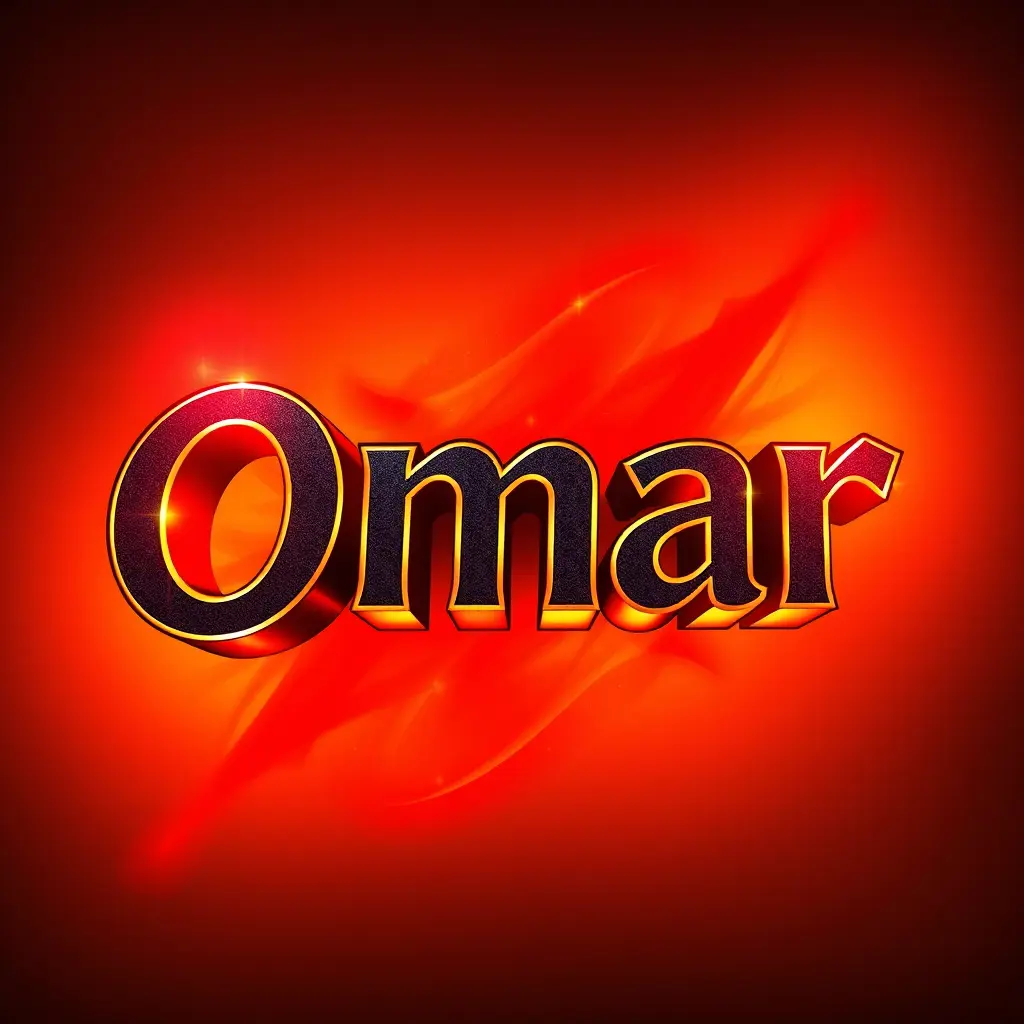 Logo design with the name "Omar" in bold, modern 3D typography. Add glowing red effects around the text, with creative shadow and fantasy lighting. Use a mix of yellow and red colors blending smoothly in the background. Make it look cinematic, stylish, and powerful. High detail, dramatic lighting, fantasy-inspired visual style.