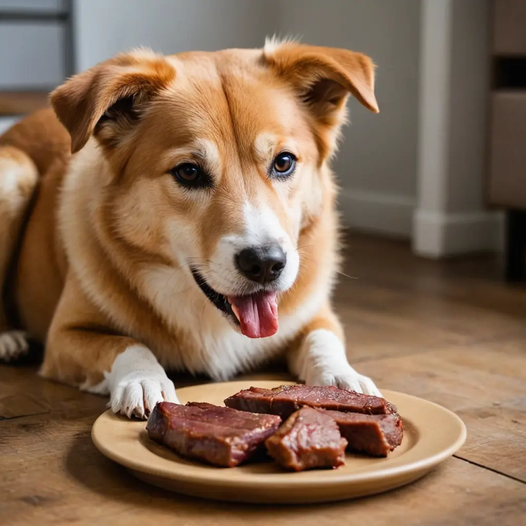 كلب ياكل لحم