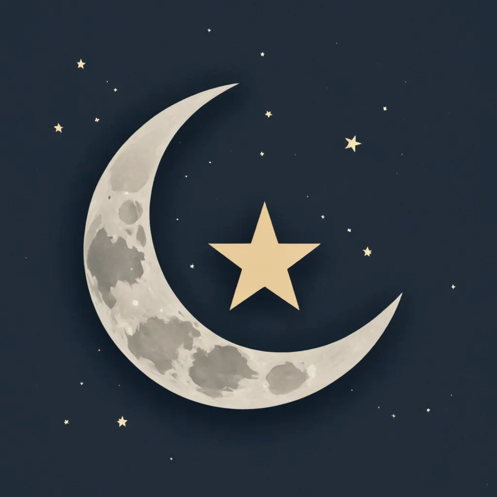 القمر على شكل هلال مرسوم داخله حرف A وتقع وسطه نجمة مكتوب عليها حرف C