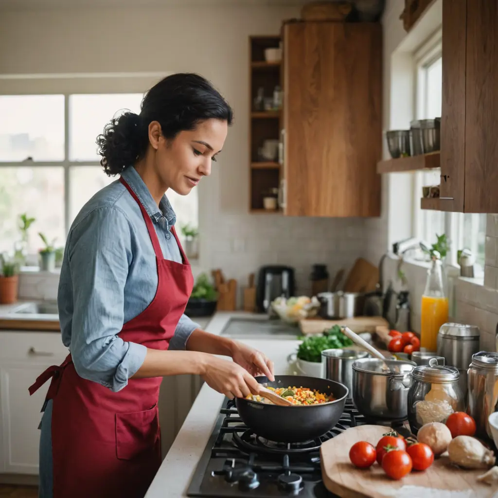 صورة:امرأة في المطبخ تعد الطعام.