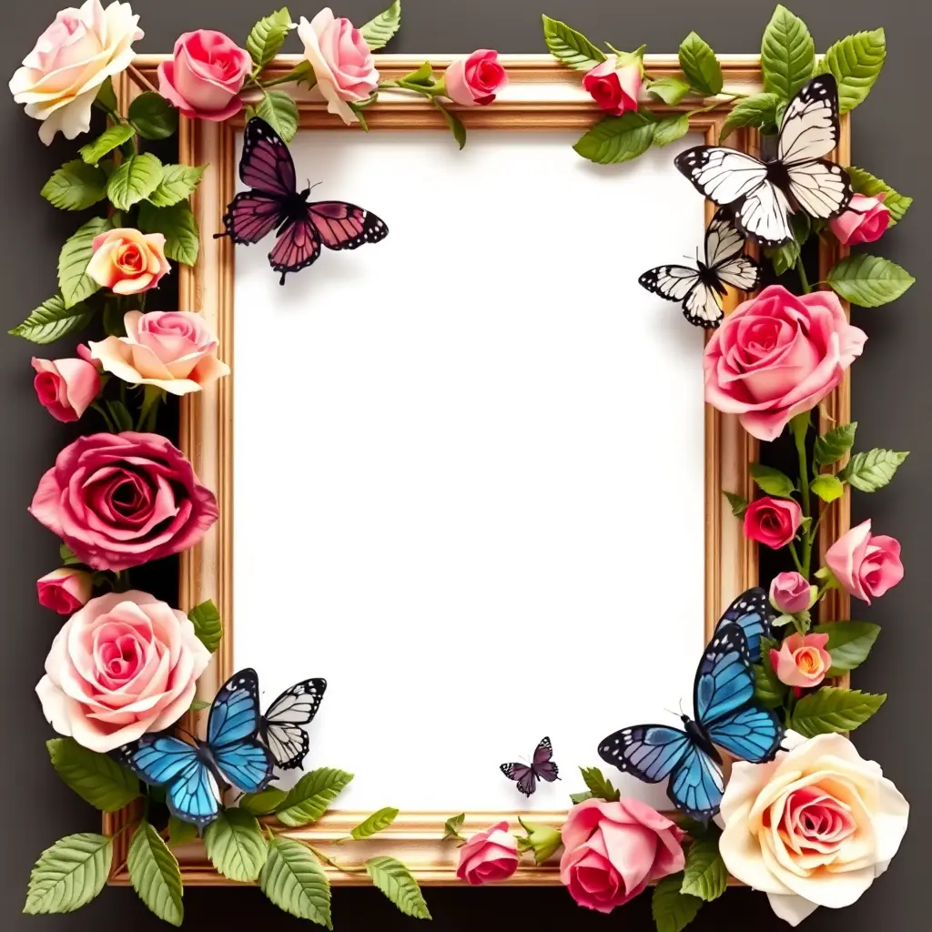 اطار مزخرف بالورد والفراشات قياس A4  ويكون ابيض من الداخل بوجودة عالية