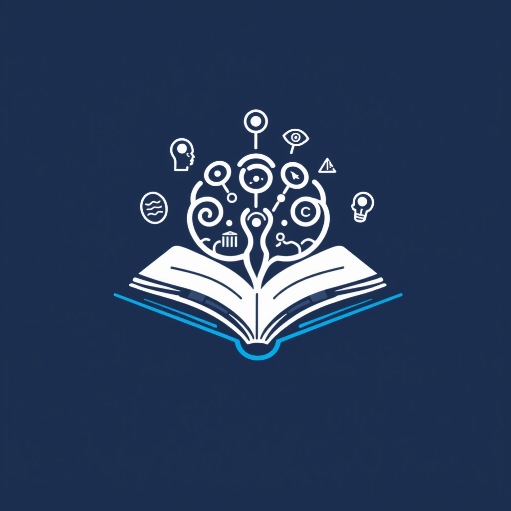 شعار يحتوي كتاب مع رموز الذكاء الاصطناعي