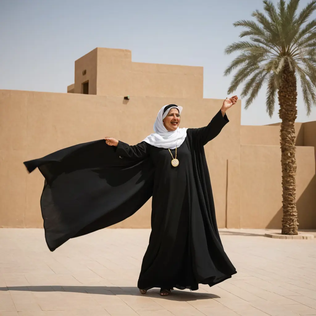 عجوز سعودية ترقص ولابسة عباية بالبر