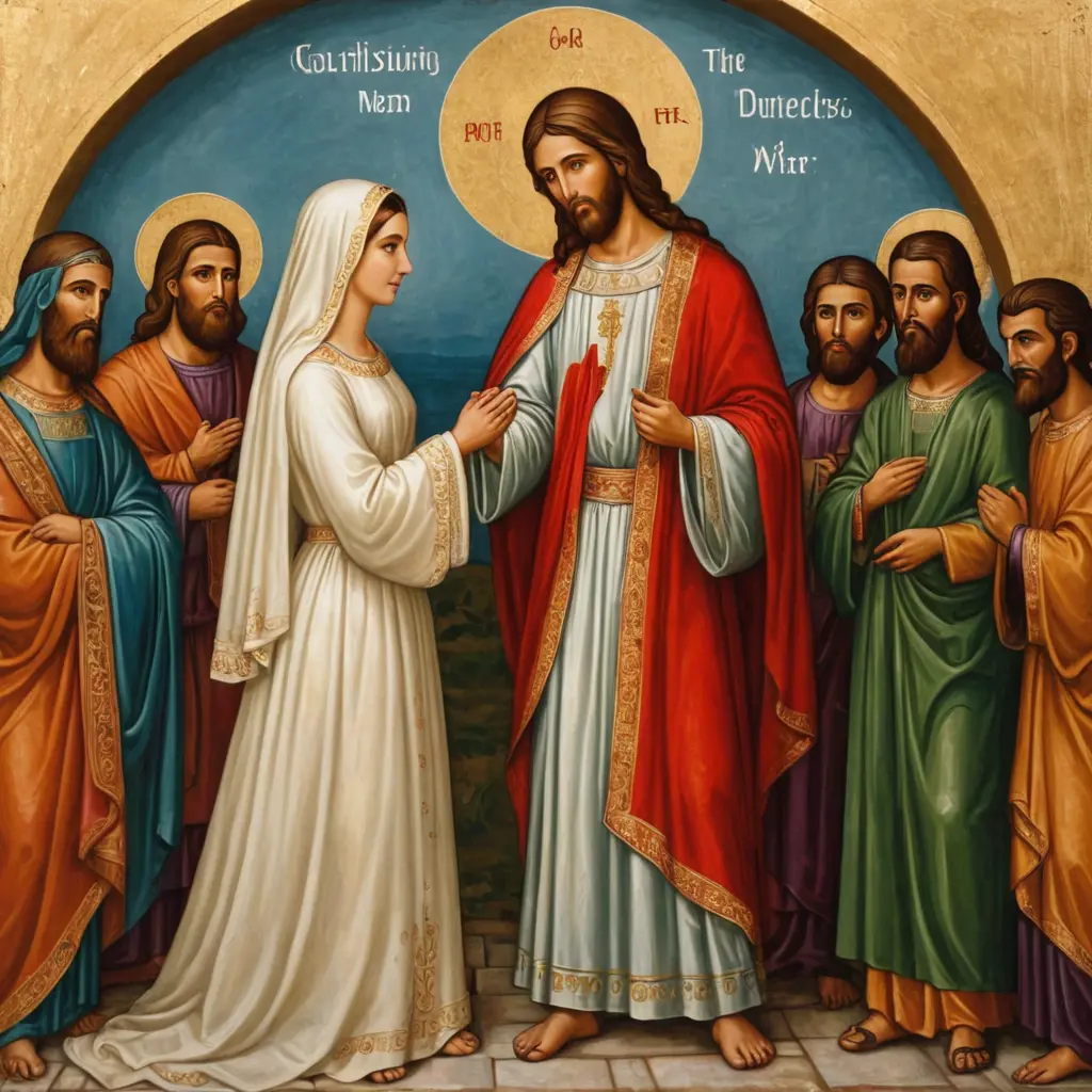 صوره للسد المسيح يبارك عريس وعروسه فى قانا الجليل  اريد ان تكون الصوره قريبه من فكره ايقونه عرس قانا الجليل  اريد ان يكون الزوج بجوار الزوجه. والسيد المسيح امامهم اريد ان يكون الزوج رجل والزوجه امراءه