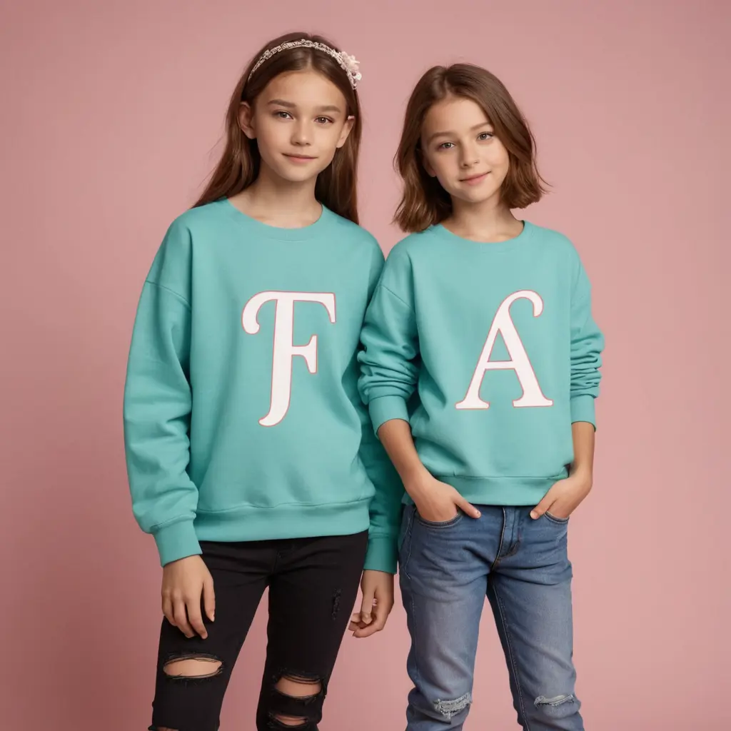 بنت مع ولد في خيال مكتوب ع ملابس بنت حرفF وعلى ملابس ولد حرف A