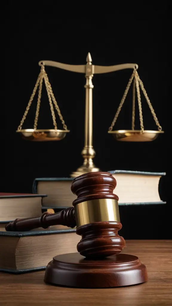 مطرقة محامي مع ميزان وكتب بخلفية سوداء