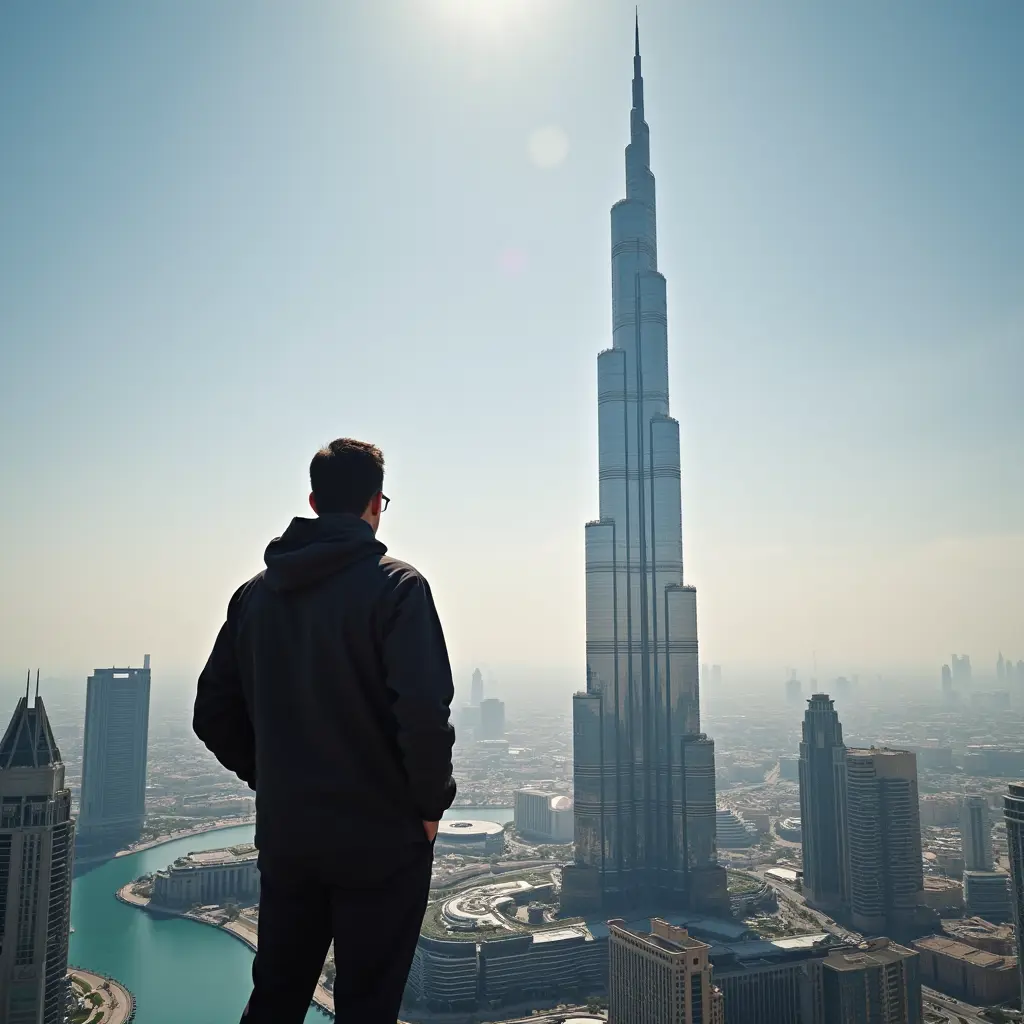 صورة لرجل يبني برج خليفة
