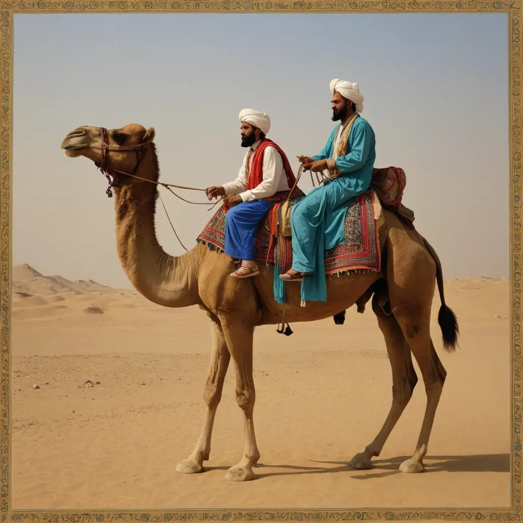 عنترة بن شداد يقود جمل عليه هودج تجلس فيه عبلة