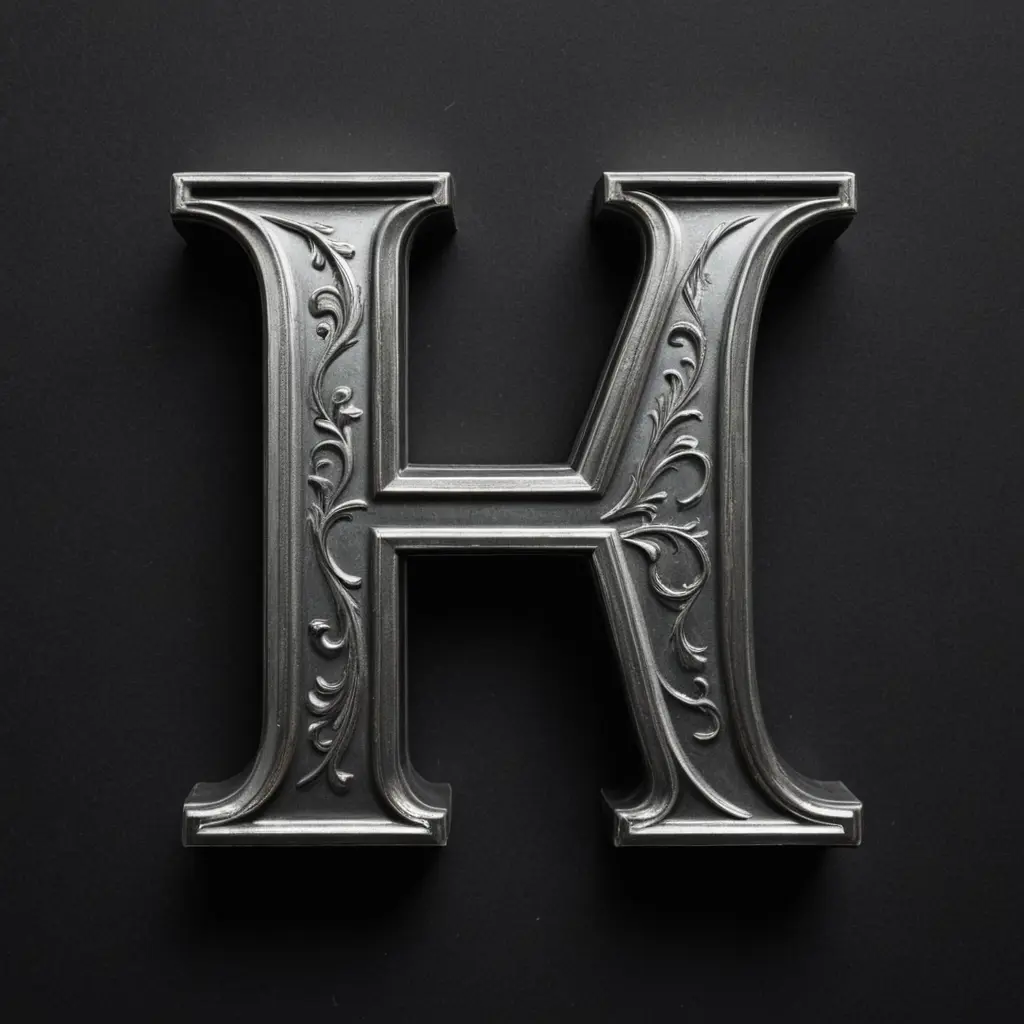 حرف H فضي اللون وال background لونها اسود