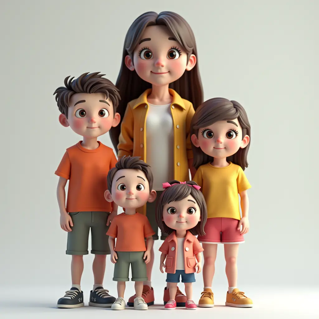 صوره عائليه بالذكاء الصناعي وثلاثية الابعاد تتكون من أم عندها ٤٠ سنه مع ولدان عمرهما ١٥ سنه و ٣ سنوات وبنتين عمرهما ١٢ سنه و ٨ سنوات