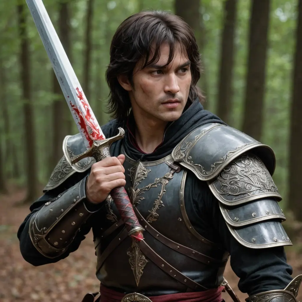 محارب يمسك سيف ملطخ بالدماء ويقبل السيف