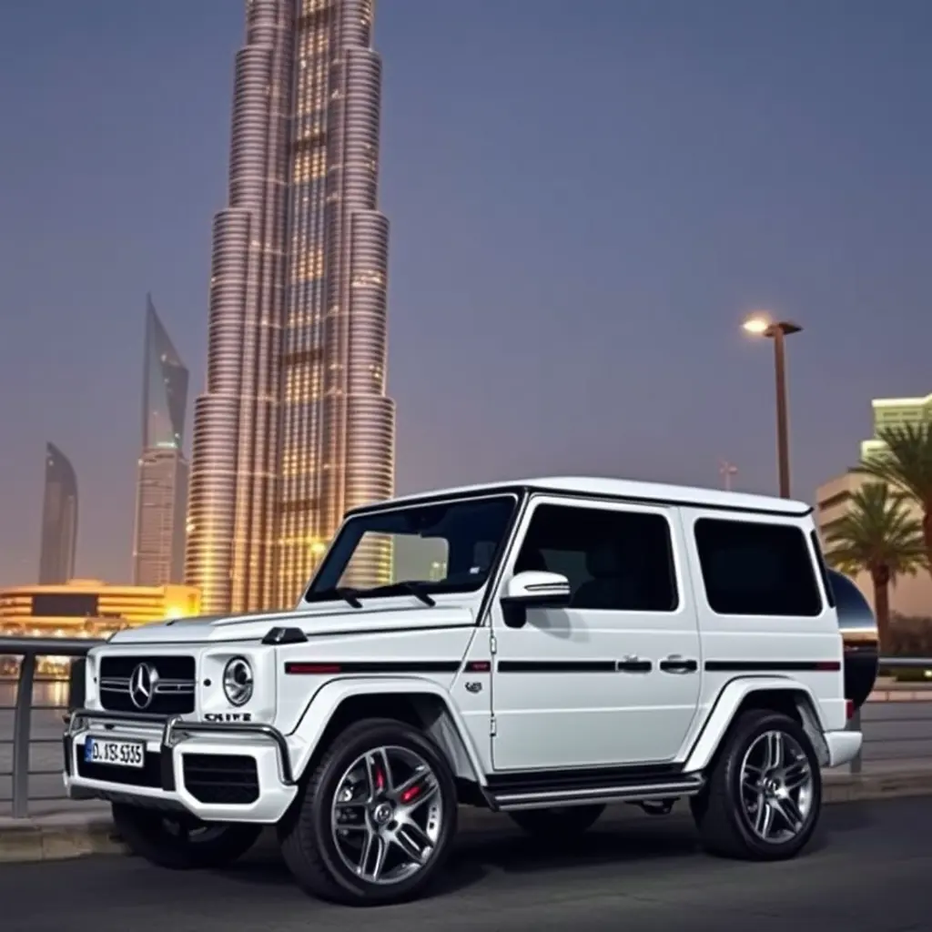 مرسيدس جي كلاس تقف بجوار برج خليفة