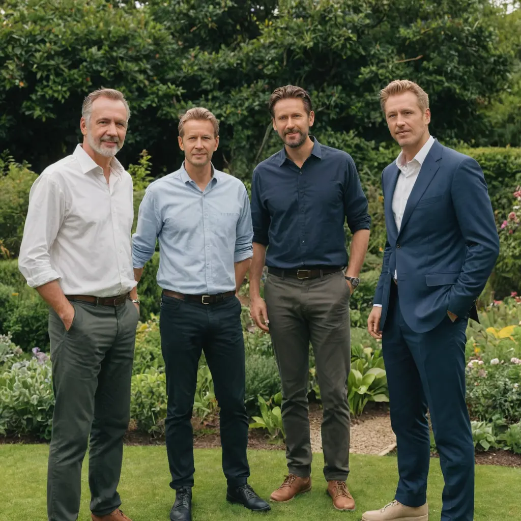 ثلاث اشخاص رجال واقفون جنب بعض في حديقه