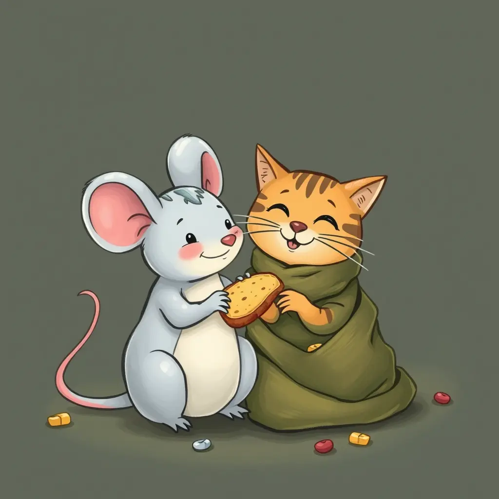 ارسم لي فأر وقطة يأكل المثلجات تيلاندية ملفوفة وهو مبتسمين و فرحين