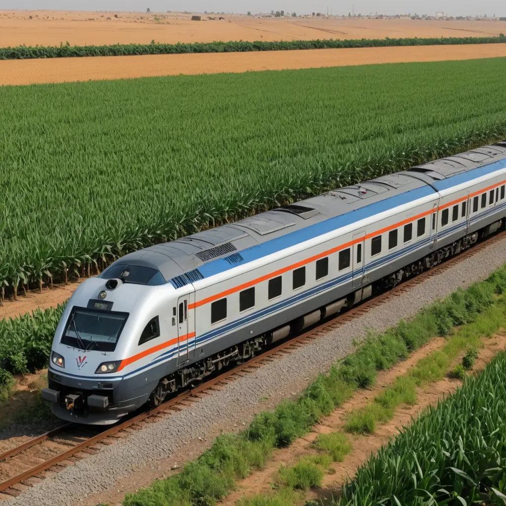 صوره لقطار فخم خلفيه تظهر مدى طول القطار يمر طريق القطار وسط زراعات ويكتب اعلى سطح القطار كلمه ياسر امين باللغه العربيه الفصحى