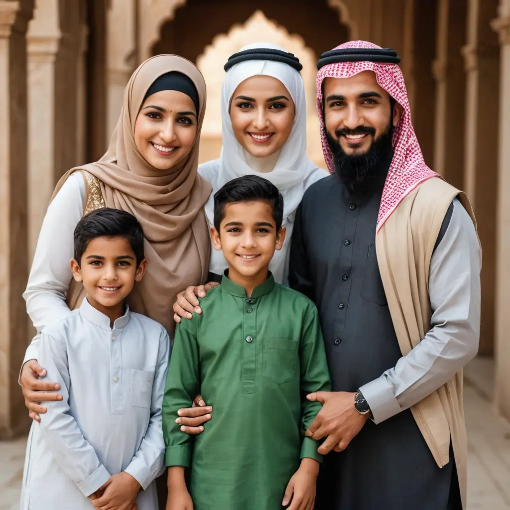 عائلة مسلمة مكونة من الوالدين و ولدين ذكرين صغيرين
