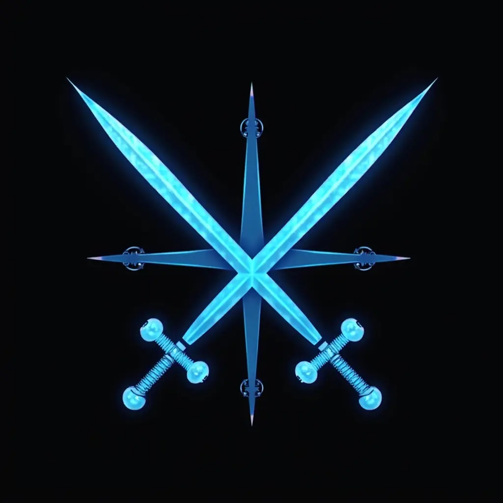 لوجو سيفين متقاطعين باللون الازرق والاسود