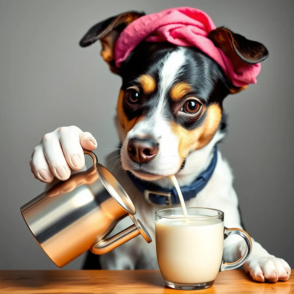 صورة كلب لابس عقال ويصب شاهي حليب