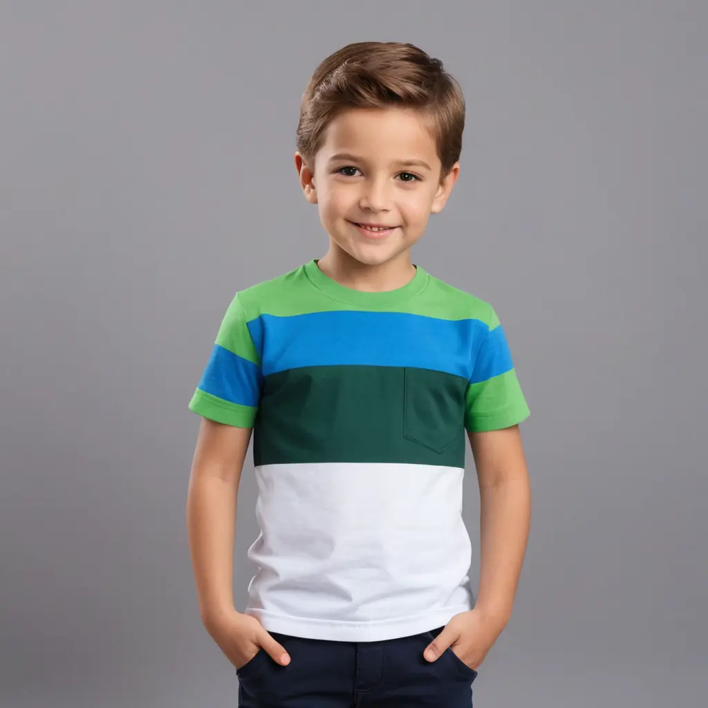 تيشرت ازرق و ابيض و اخضر للاولاد