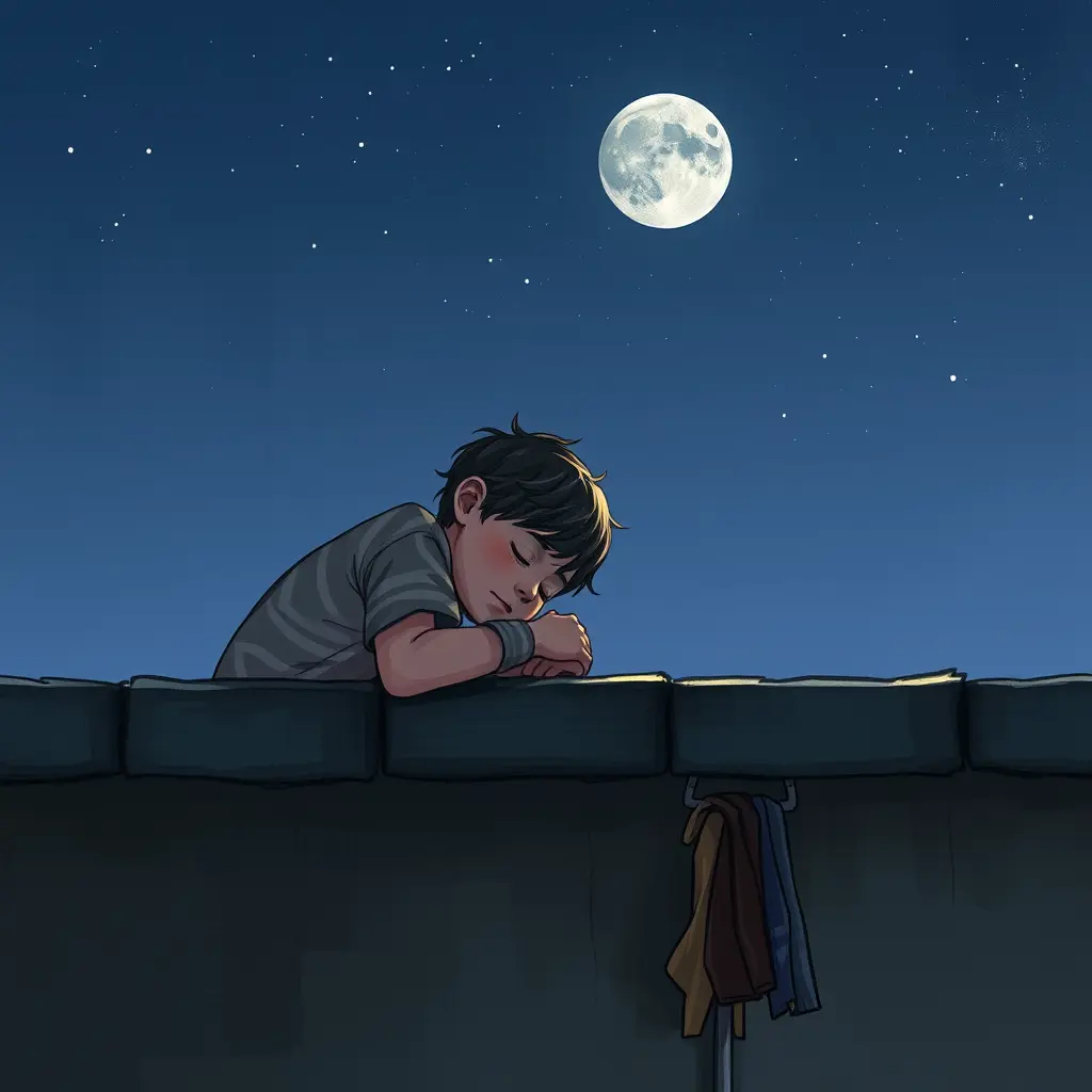 ولد نائم فوق السطح