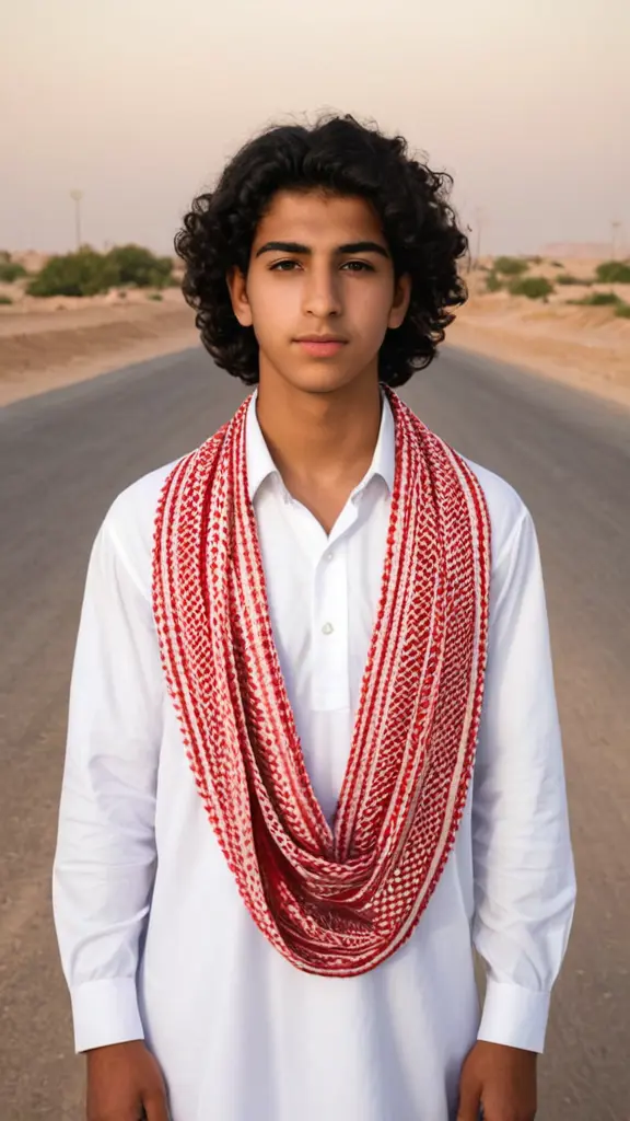 مراهق  سعودي وسيم جدا يرتدي ثوب ابيض وشماغ احمر  وابيض بدون لحية وطوله ١٧٠ وبشعر كيرلي قصير