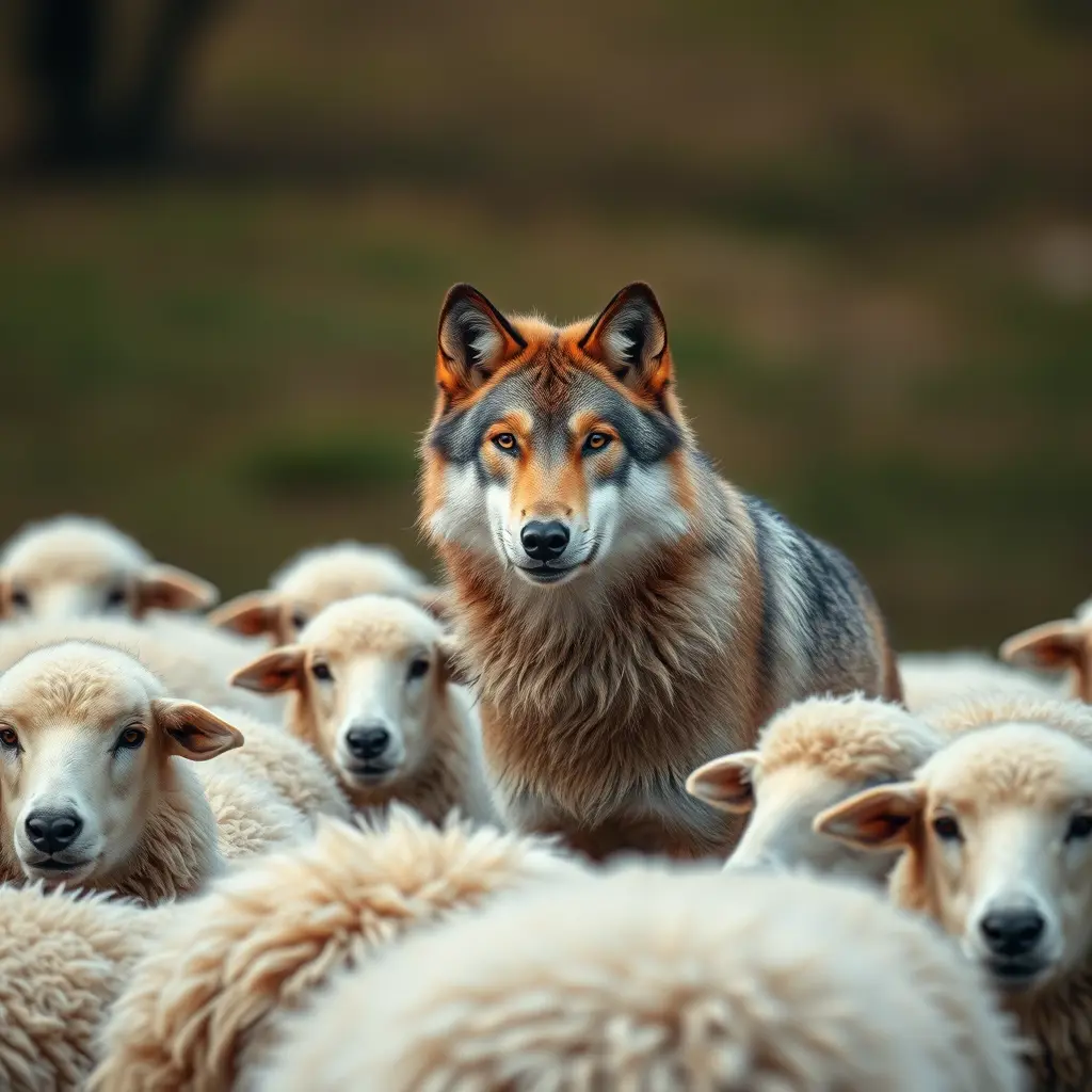 ذئب في وسط مجموعه خرفان