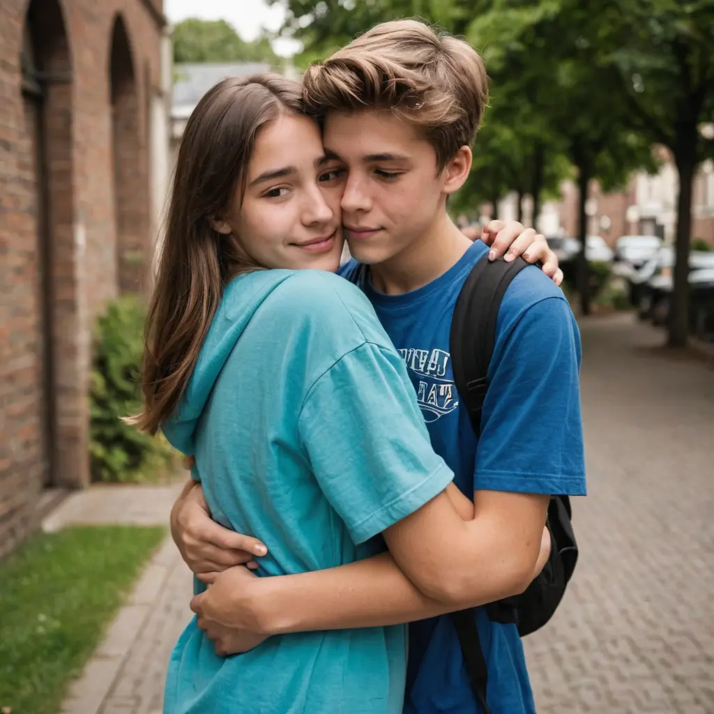بنت تعانق شاب مراهق