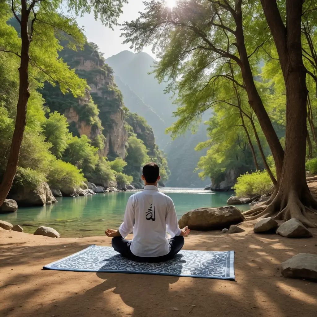 شخص يتأمل في مكان طبيعي أجعلها تحمل نوعاً من العقلانية أضف لها خط عربي