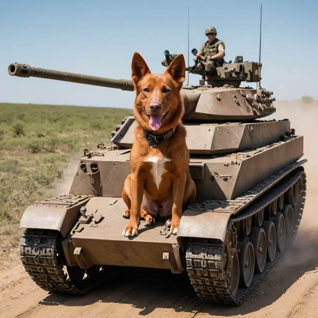 كلب احمر يقود دبابه