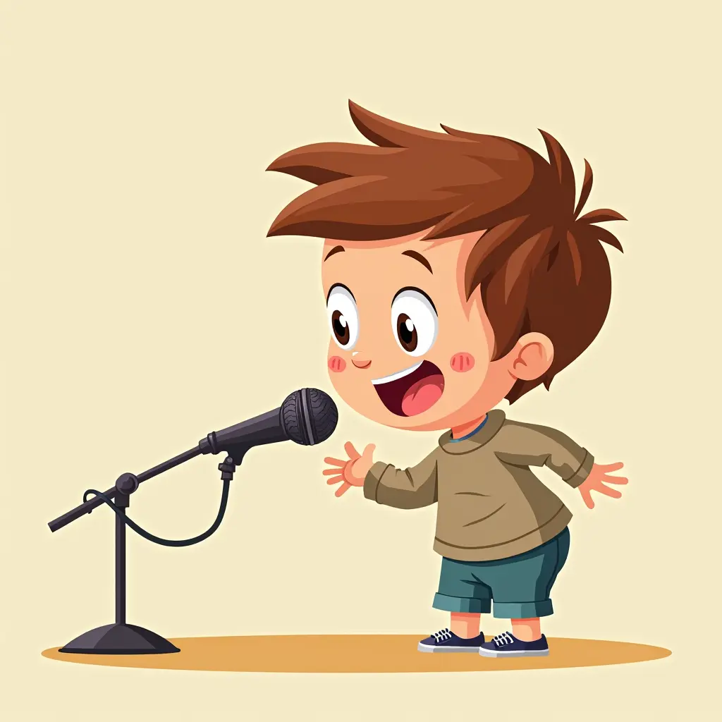 طفل كرتون بديتحدث فى المكرفون