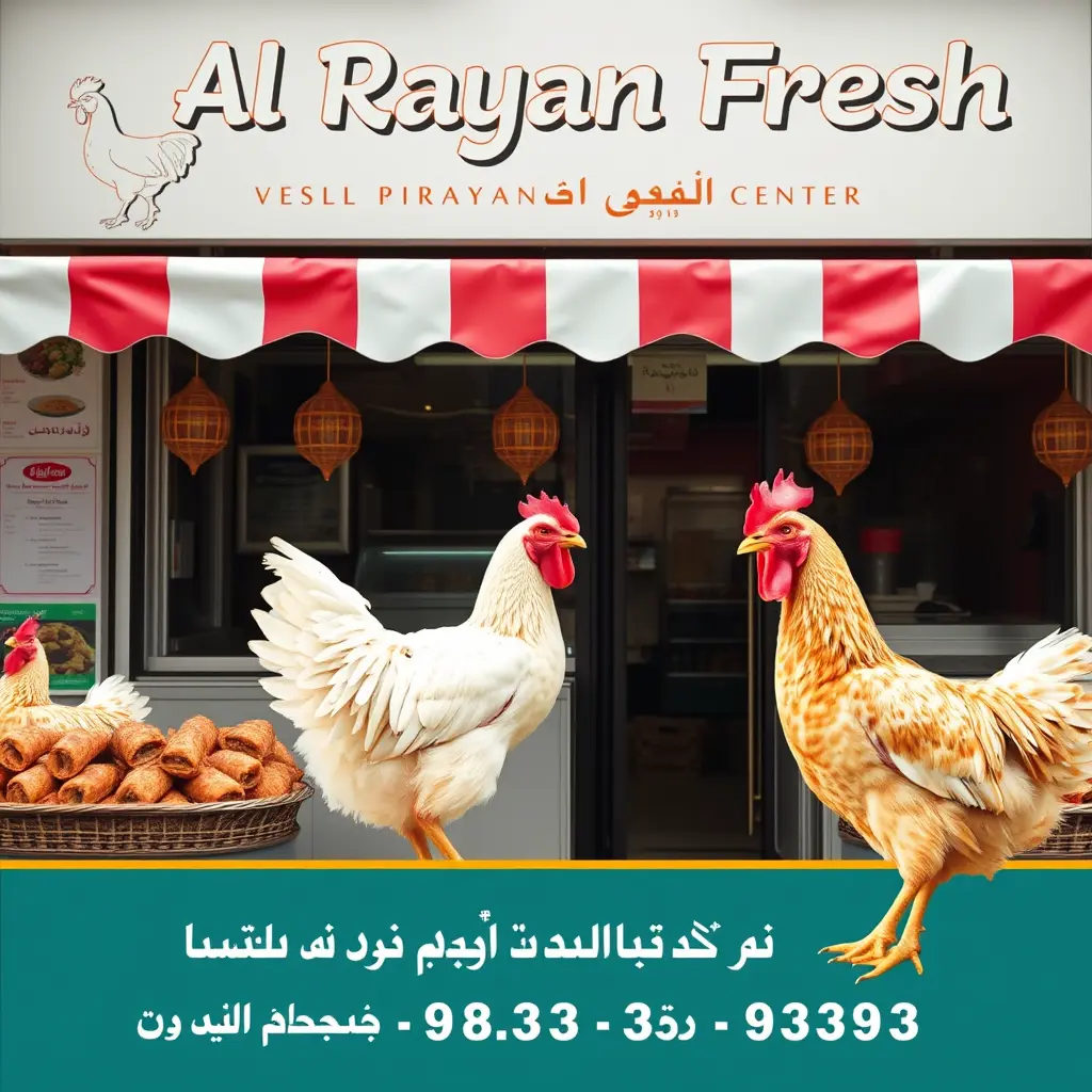 اعلان لمركز بيع الدجاج اسمه الريان فرش
