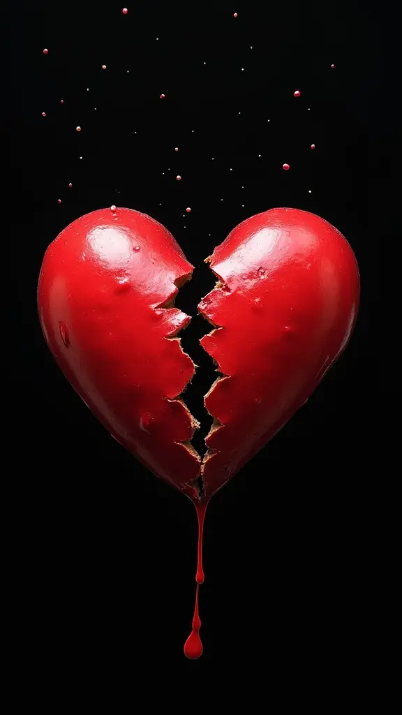 قلب محطم بخلفية سوداء