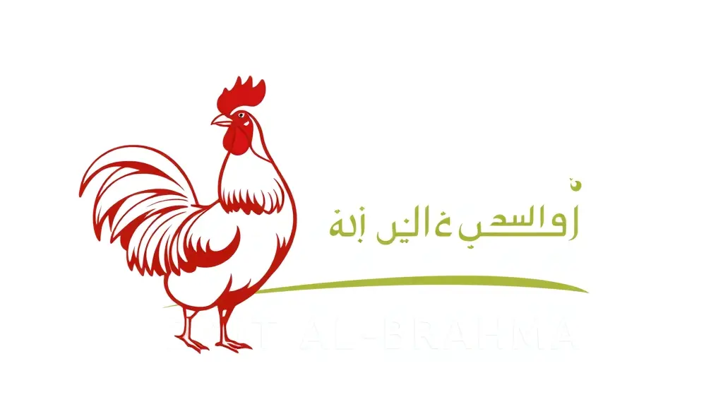 لوجو لمزرعه دجاج يحتوي علي ديك براهما ويكتب أسم المزرعه BAIT AL-BRAHMA