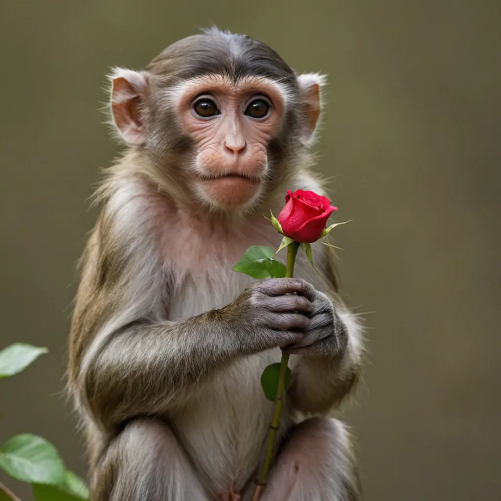قرد يحمل وردة