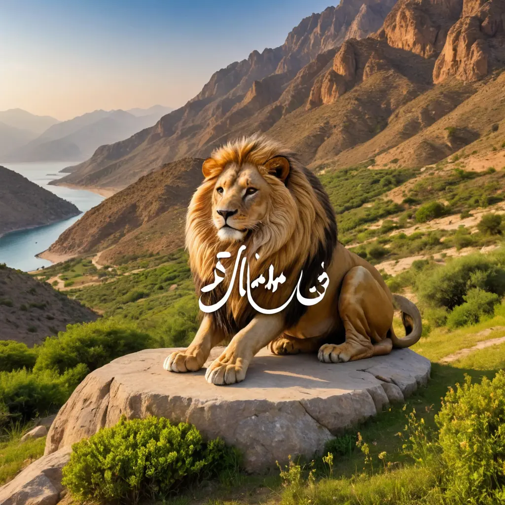 اسم عبد الرحمن علي هيئة اسد مكتوب بالخط العربي في الطبيعة الخلابة