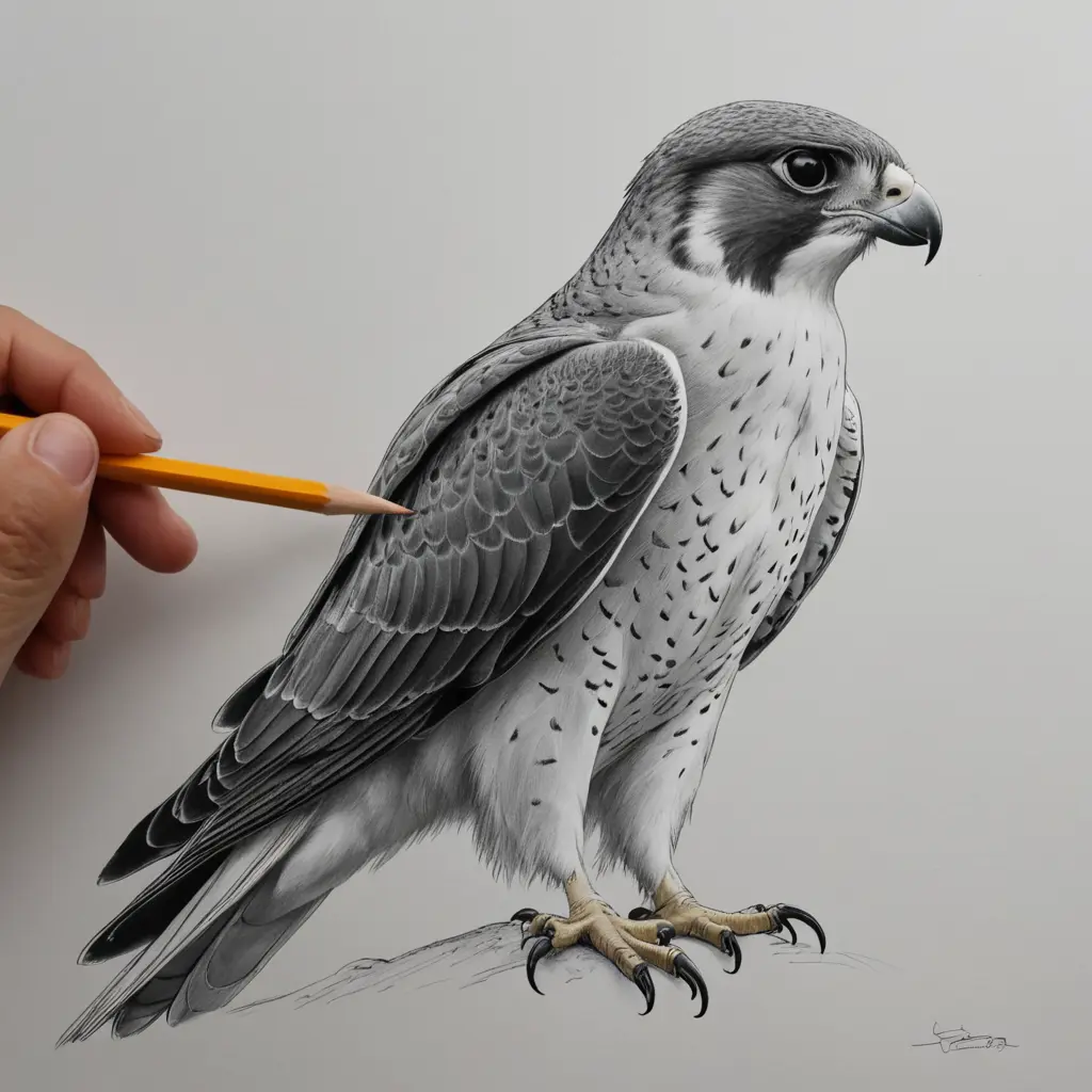 أريد رسمة لطائر الشاهين بيد طفل صغير بقلم الرصاص بدون الوان