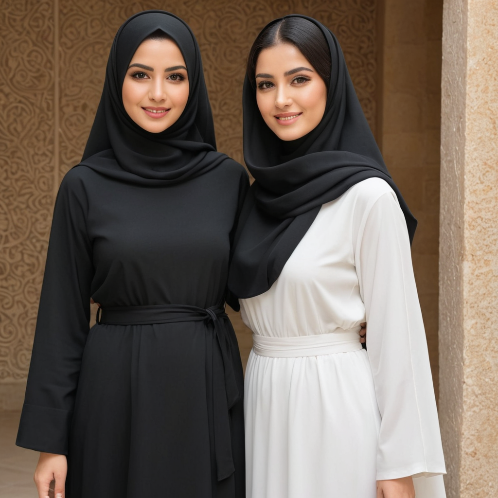صورة أسماء السياري ويوشا السياري بشعر أسود بالعباءة