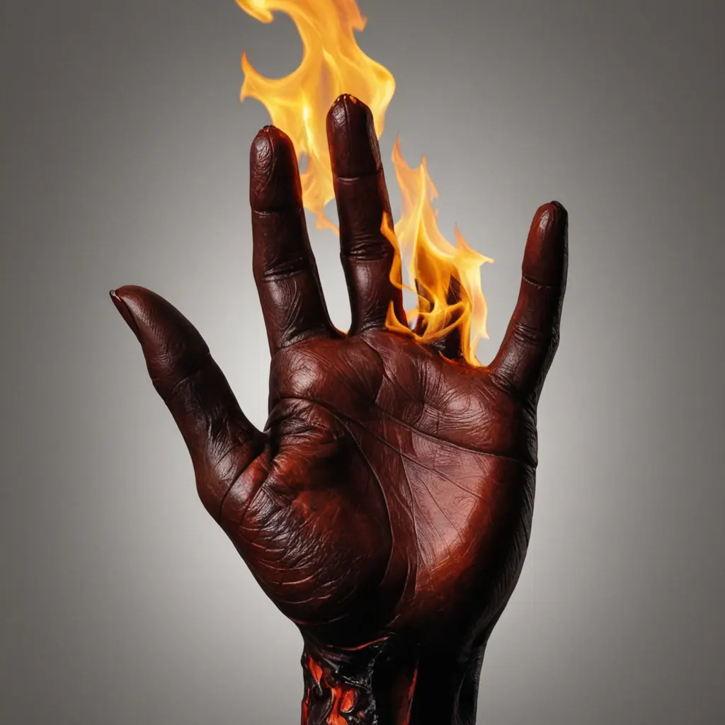 ارسم يد تحترق وفحمت من كثر النار و الدموية