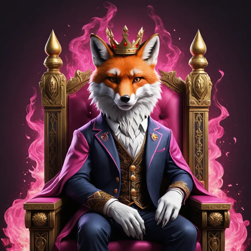 لوجو لكلمة (DALAL) اضافة ثعلب جالس على عرش ثلاثية الابعاد تغيرر الخلفية اضافة تاج على الثعلب اضافة نار ودخان اضافة ثعلب مخيف له انياب و مفترس اضافة اوراق اللعب  اضافة اللون الزهري اضافة تعديلات  اضافة إطار تغيرر الخلفية الكتابة بحجم كبير