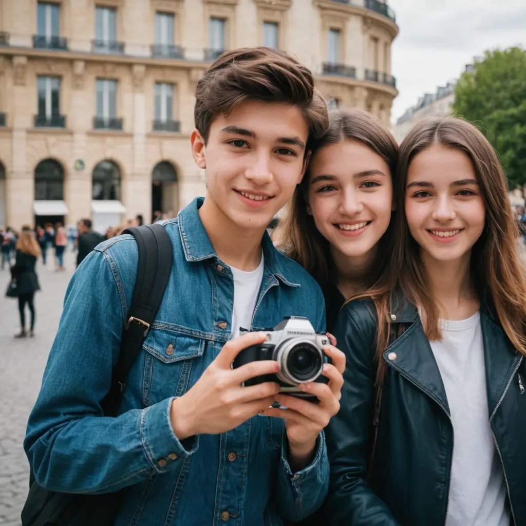 بنت تتصور مع شاب مراهق في مدينة باريس