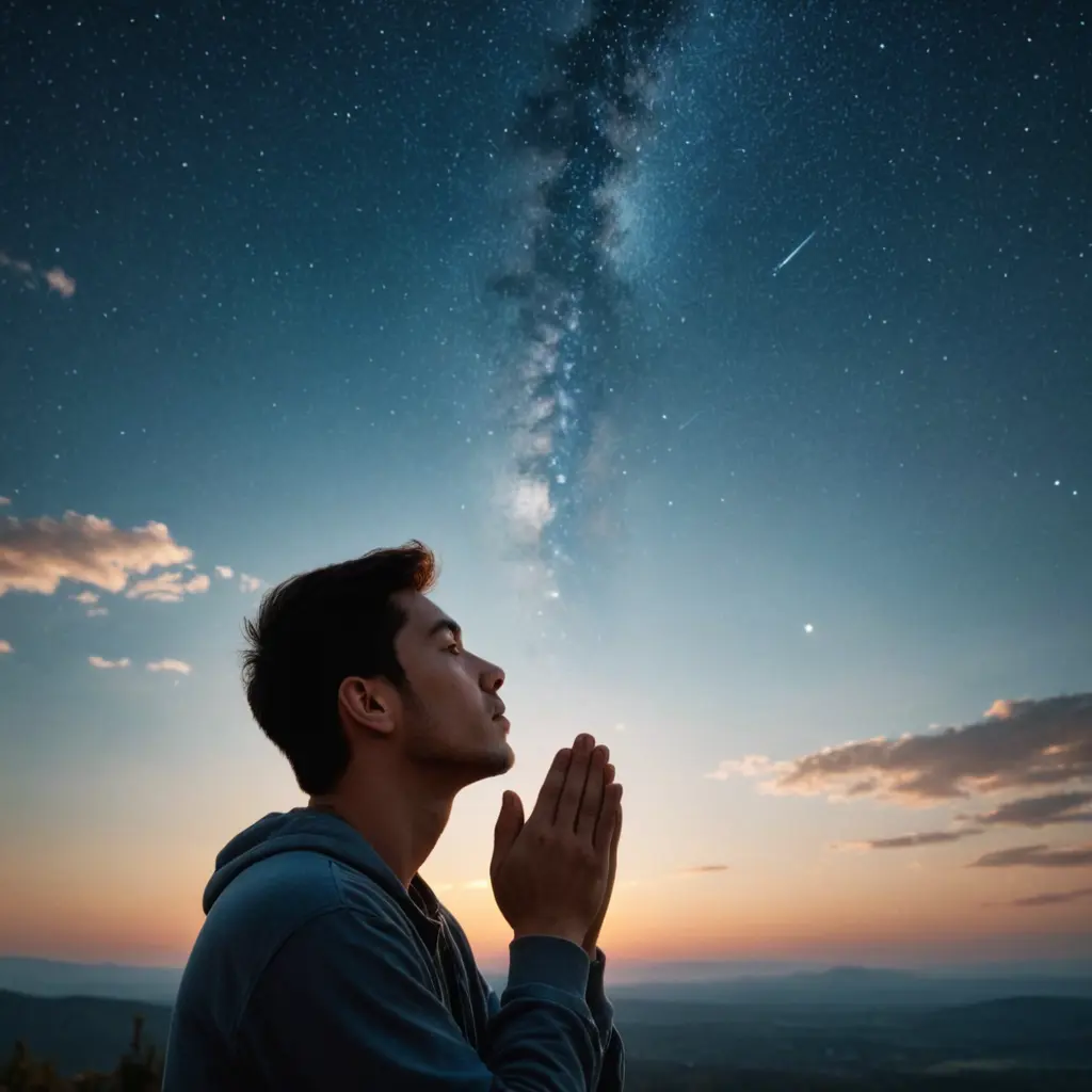 صورة واقعيه شخص ينظر للسماء ويدعي اللّٰه