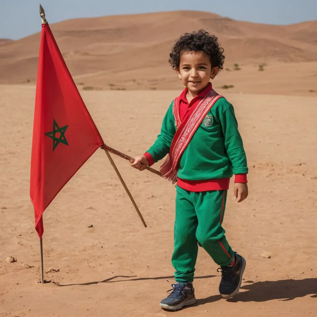طفل صغير يحمل راية المغرب