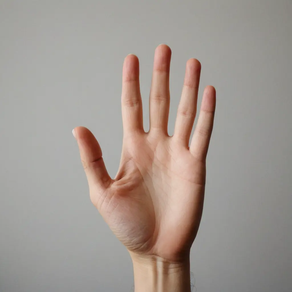 five انشئ صورة: يد عليها خمس أصابع، يوضح "There are five fingers on my hand."