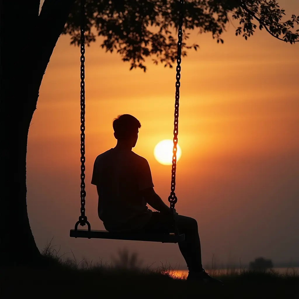 صورة تمثل الوحدة صورة شاب جالس على ارجوحة اريد الصورة ظلية مع غروب الشمس