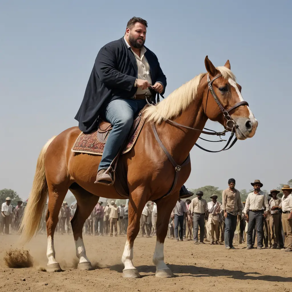 رجل ضخم يركب حصان ترى الحصان صغير من شدة ضخامة الرجل