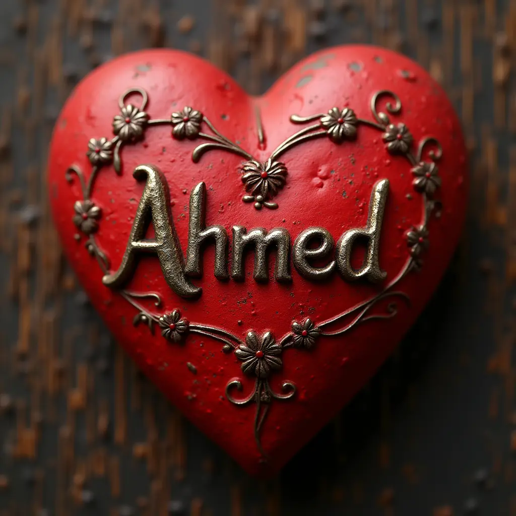 صورة قلب انسان احمر  محفور عليه اسم احمد بشكل مزخرف