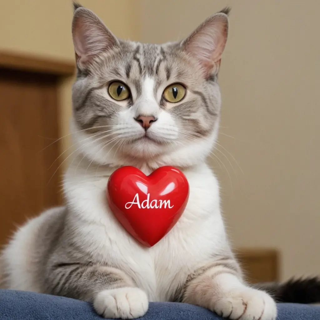 قط يحمل قلب واقعي عليه اسم adham