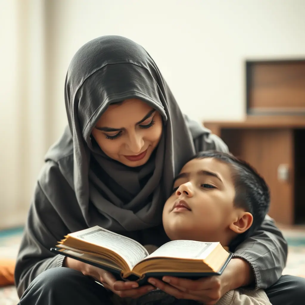 الأم تقرأ القرأن على رأس إبنها الكبير