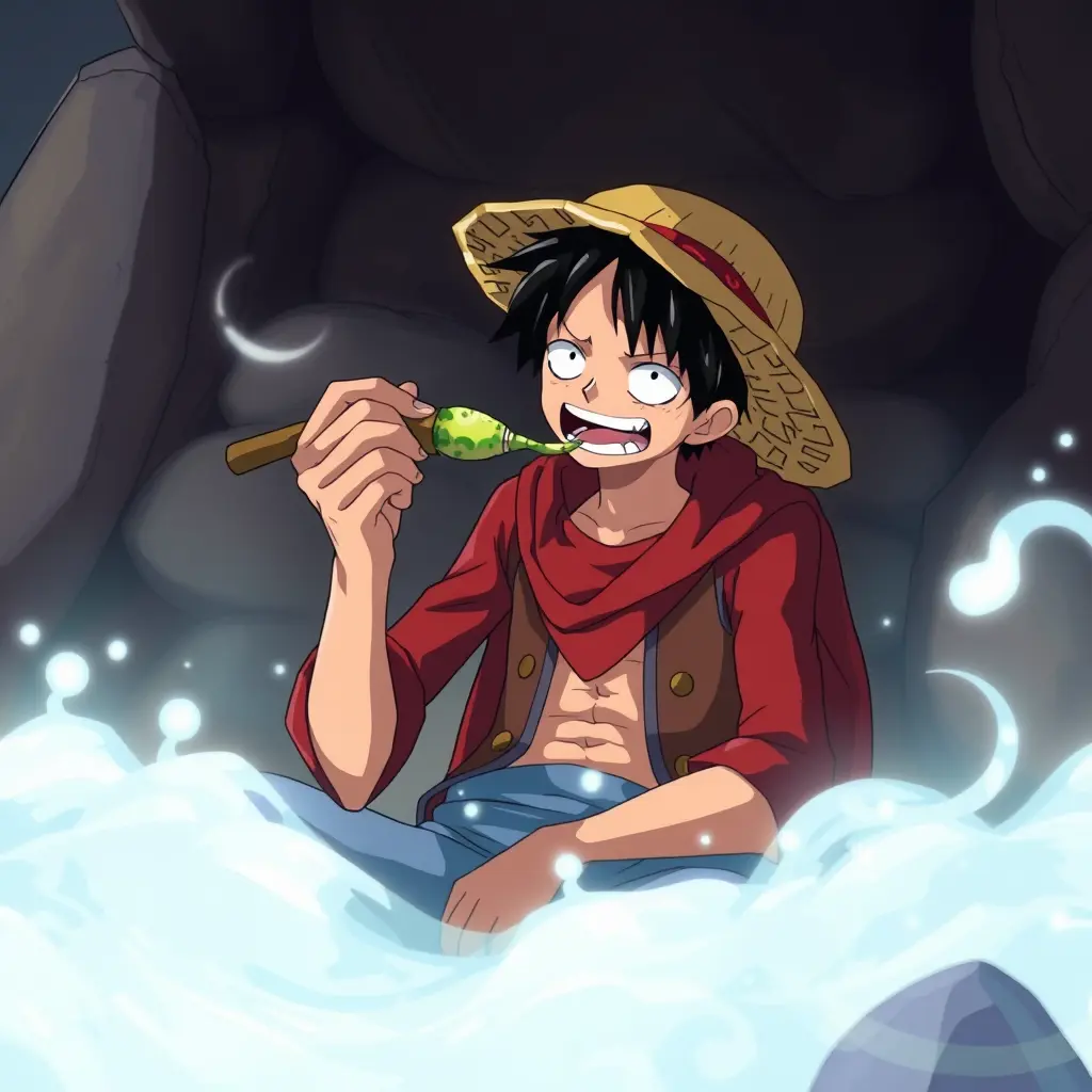 اريد صورة شخصية لوفي من انمي مسلسل ون بيس وهو يأكل القات في باب اليمن الموجود في صنعاء